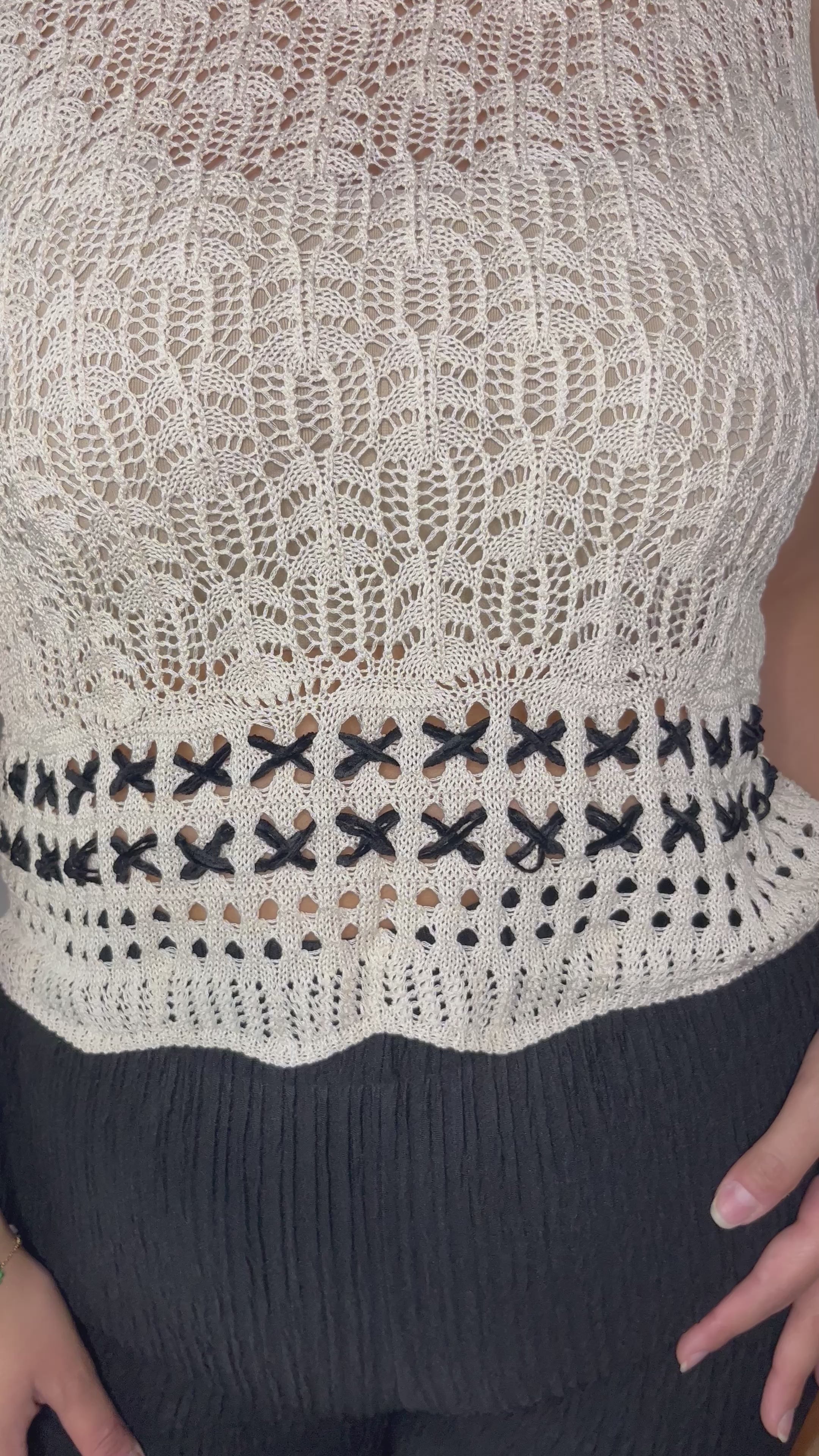 Our Summer Dreams Crochet Top has a sleeveless design which offers a chic and breezy silhouette, perfect for warm days and balmy evenings. Versatile and timeless, this knitted top effortlessly transitions from casual outings to special occasions.