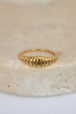 Add style and durability to your ring stack with the Avery Textured Ring. Made from high-quality stainless steel, this ring stands out with its unique textured design.