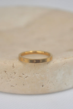 This dainty Dani Heart Ring is made from stainless steel, showcasing a beautifully laser detailed heart design. With its chic and delicate appearance, this ring adds a touch of coquette.