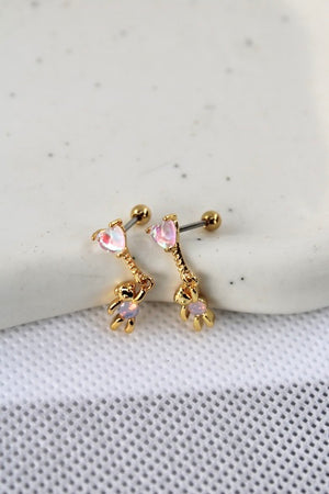 These adorable Kacey Bear Studs feature a cartoon bear holding onto an iridescent diamond heart balloon stud with a secure ball back. Made of high-quality stainless steel, they add a touch of whimsy and sparkle.