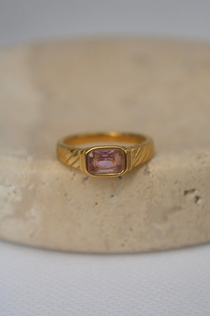 This stunning Kylie Pink Diamond Ring combines durable stainless steel with a beautiful pink diamond accent and a textured band. A perfect choice for a unique and elegant piece of jewelry that will last.