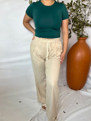 Where comfort meets coastal elegance. Our Sandy Shores Linen trousers are crafted from luxuriously soft nude linen, these bottoms feature an easy elastic waistband for all-day wearability. Embrace the effortless charm of seaside living in these timeless linen bottoms that transition seamlessly from day to night.