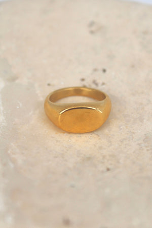 Expertly made from high quality stainless steel, the Brae Bold Ring exudes timelessness with its bold gold design. Durable and stylish, this ring will elevate any jewelry collection and make a statement of confidence.