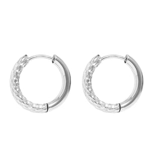 Cathy Half Textured Huggies offer a refined blend of subtle texture and sleek design. Made from durable stainless steel, these huggie hoops have a secure clasp closure for easy wear and reliable fit.