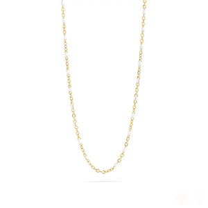 The Erin Beaded Confetti Necklace showcases a refined design featuring delicate white confetti-like beads. Its resilient material ensures lasting wear while maintaining a shine, making it an ideal accessory for layering or wearing alone.